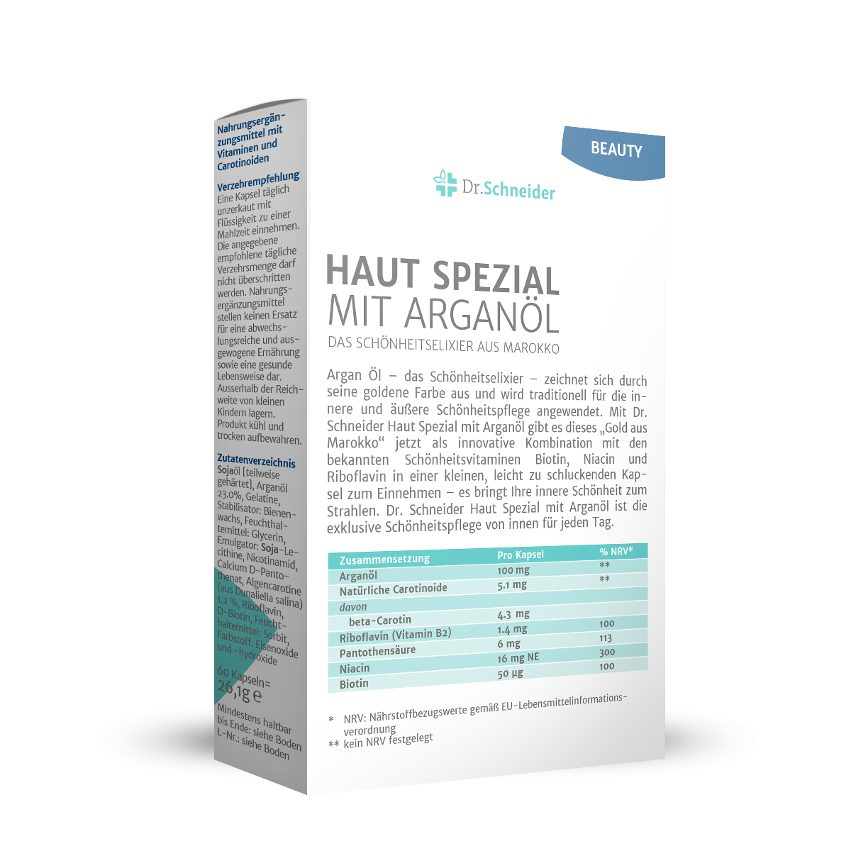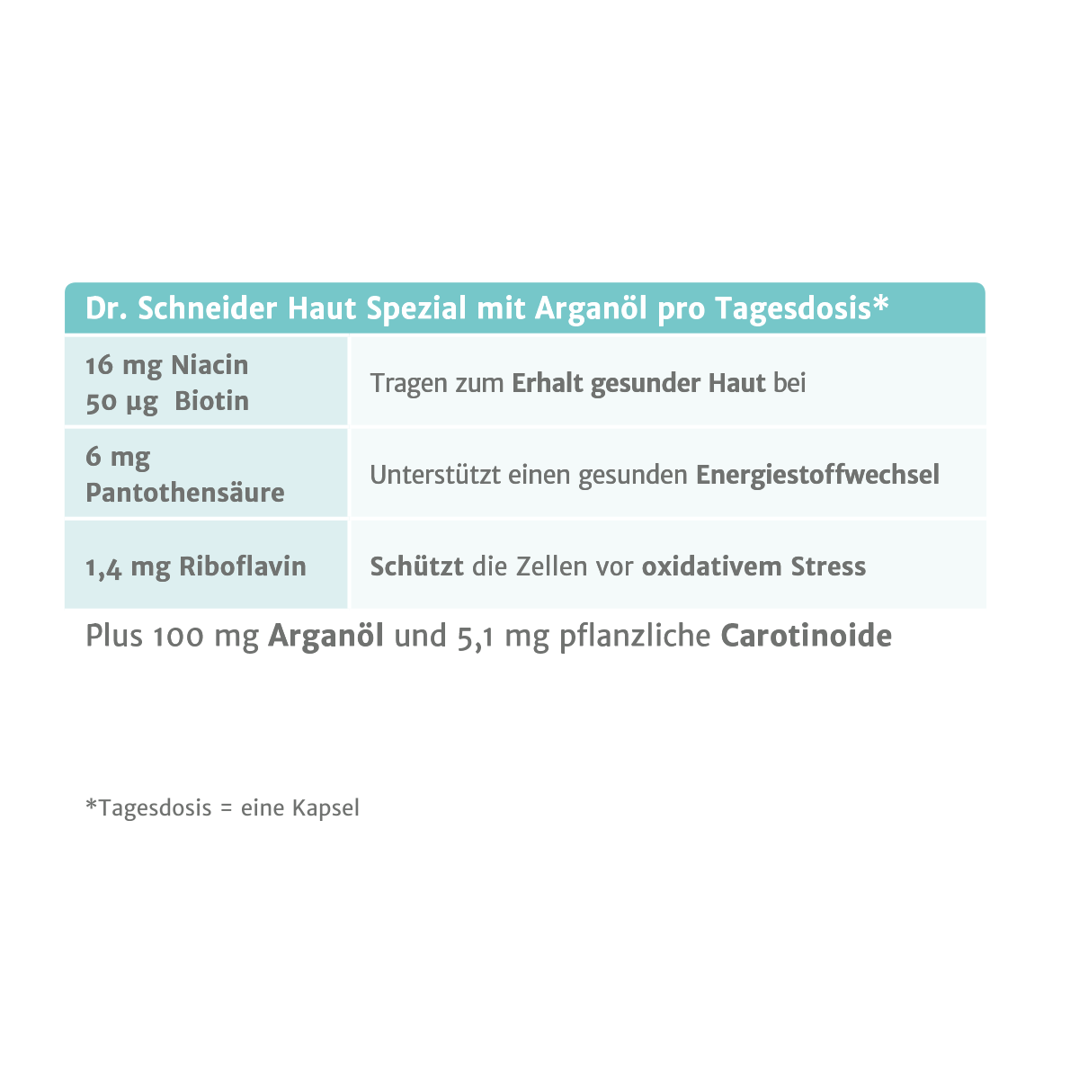 • Dr. Schneider Haut Spezial mit Arganöl: Für die tägliche Schönheitspflege von innen. Mit kaltgepresstem Arganöl aus nachhaltiger Landwirtschaft.